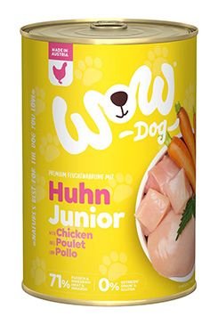 WOW piščanec s korenčkom je popolna mokra hrana vodilnega avstrijskega proizvajalca, primerna za mladiče in odraščajoče pse vseh pasem, stare od 2 do 12 mesecev, z 71 % mesa in drobovine. Meso je dopolnjeno z zelenjavo, zelišči iz Alp in visokokakovostnim lanenim oljem za odličen začetek dolgega življenja, za zdrave kosti in sklepe. Konzerve so ročno polnjene v družinskem avstrijskem podjetju z uporabo lokalnih, večinoma alpskih sestavin iz zdrave narave.