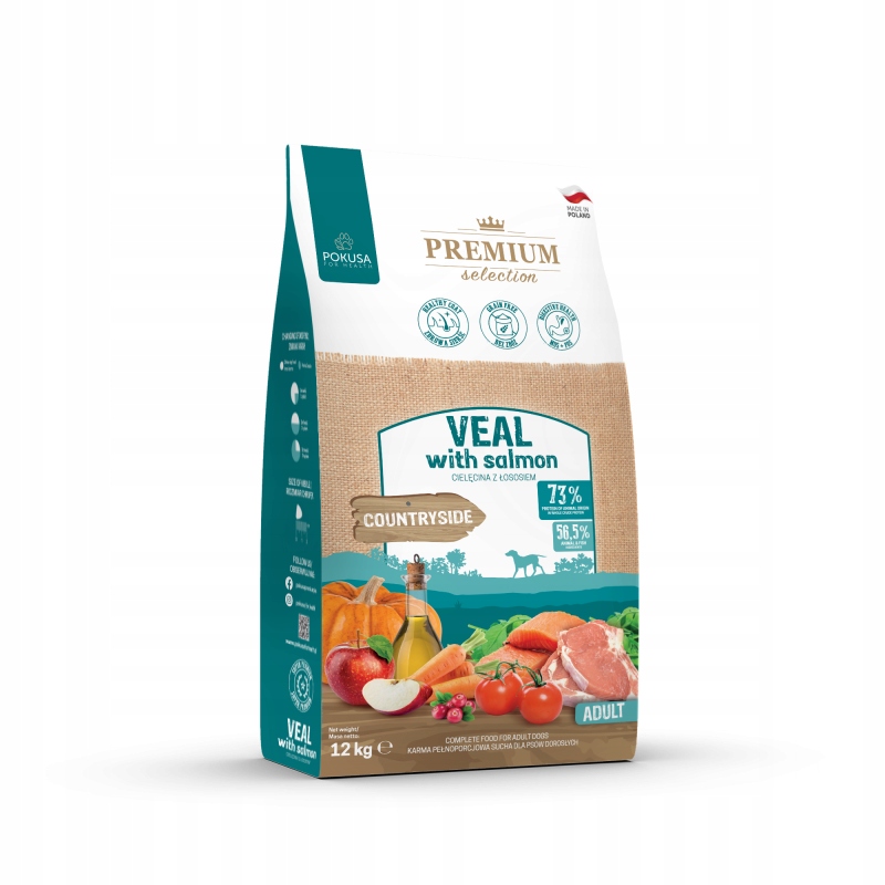 POKUSA – Telečja sladoled z lososom – 12 kg – Suha hrana za odrasle pse Celoten opis