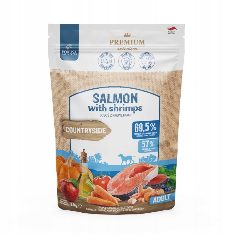 Premium Selection Countryside – suha hrana za odrasle pse z lososom in kozice