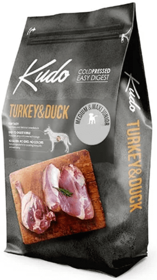 Kudo suha hrana za pse, Medium-Maxi Adult, puran in raca, 12 kg + Darilo WANPY pasji prigrizki, 100% naravni, piščančji, 150