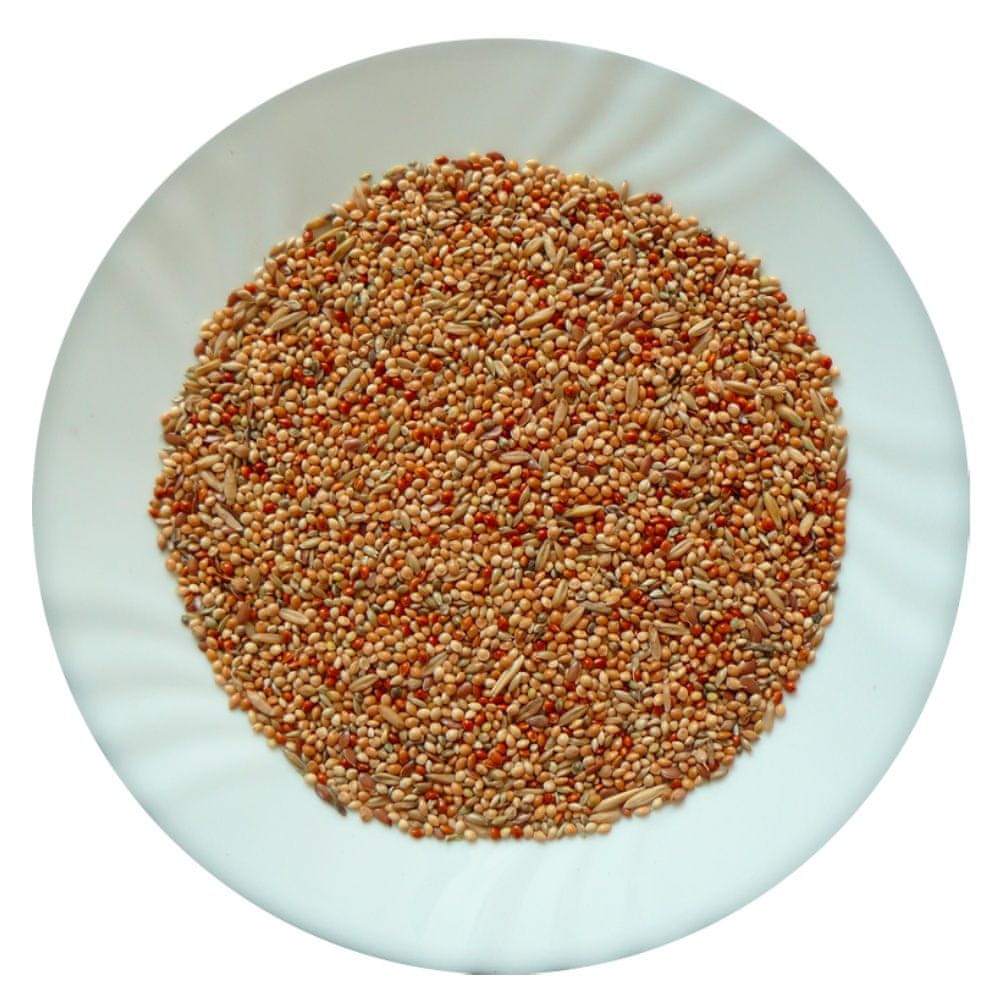 Sestavine: rumeno proso, belo proso, rdeče proso, goli oves, sijajno proso, lan.