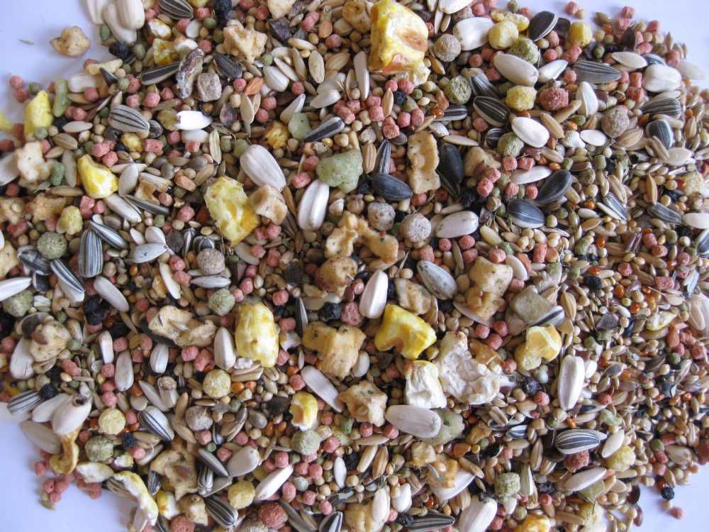 - Popolna dnevna prehrana – uravnotežena hrana za dnevno prehrano velikih papig.
