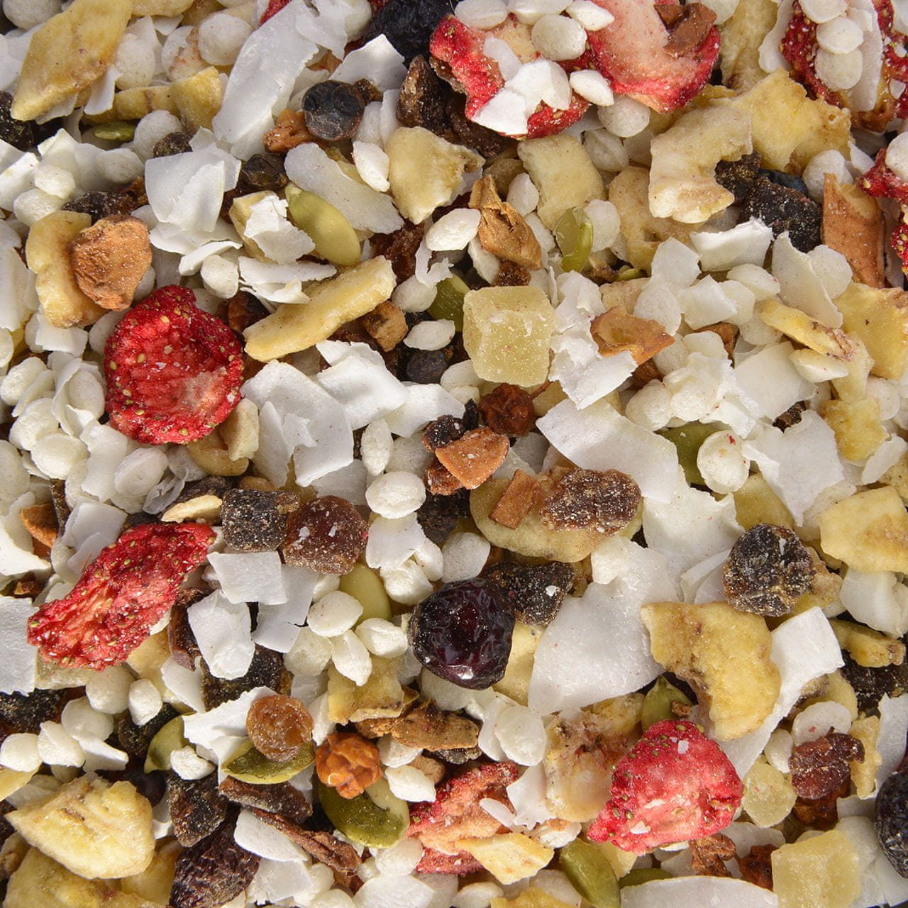 Visokokakovostna mešanica sadja in jagodičevja, naravno posušena, brez konzervansov, za vse papige