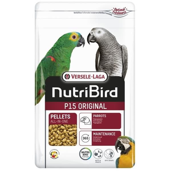 Enobarvni ekstrudirani peleti NutriBird P15 Original so znanstveno oblikovani z vsemi hranili, ki jih potrebujejo velike papige. Vsak pelet je hranilno popoln – preprečuje, da bi hrana selektivno izločala določene sestavine hrane. Opti Digest: z naravnimi glinenimi minerali in prebiotiki za zdravje črevesnega mikrobioma in optimalno prebavo. Opti Feather: vsa potrebna hranila za lepo perje. Opti Calcium: optimalno razmerje med kalcijem in fosforjem za zdravje kosti. Glavne prednosti hrane: