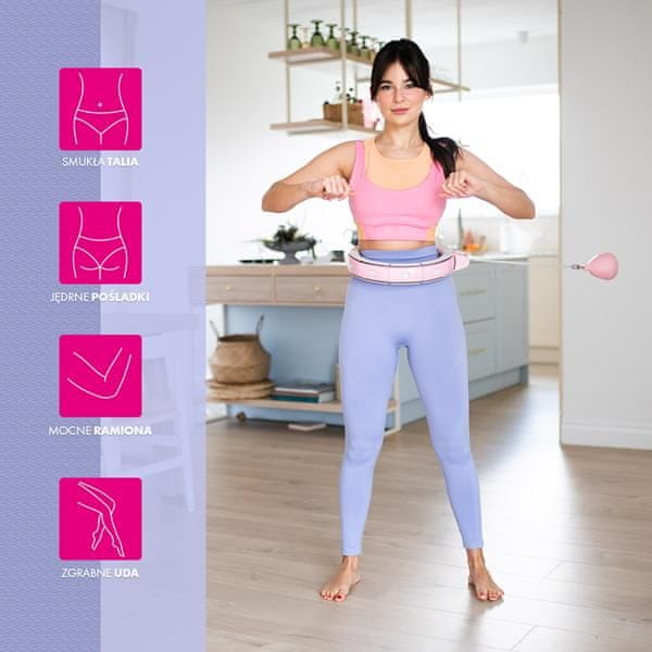 FH06 je nastavljiv hula-hop z izboklinami za blaženje vibracij in gravitacijsko žogo za fitnes. Omogoča vam hkratno vadbo in masiranje pasu. Popoln je vklj. za krepitev mišic jedra. Zahvaljujoč nastavljivemu obsegu FH06 med vadbo nikoli ne bo padel, zato je domača kardio vadba lahko dolga in prijetna. Med vadbo uporabljajte tudi pas za hujšanje BR160, ki bo poskrbel za še boljše in hitrejše rezultate!