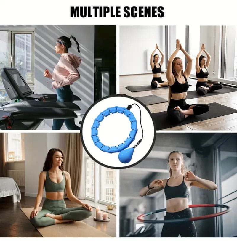 SOLFIT® Hula hop za vadbo, Hulahop obroč z utežmi, Vrtenje uteži, Prilagodljiva velikost pasu (Modra) | SPINSLIM