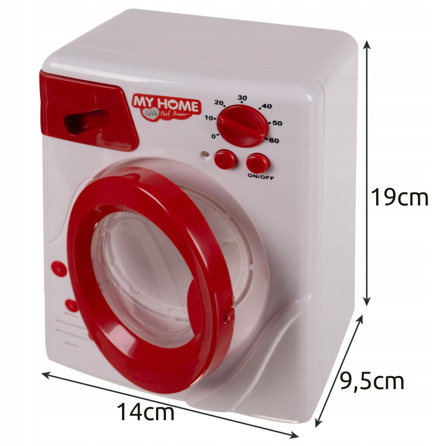 • SPECIFIKACIJA  - barva: bela, rdeča; material: plastika; napajanje: AA baterije (niso priložene); mere pralnega stroja: 14 × 19 × 9,5 cm; mere v paketu: 55 × 38 × 12 cm; teža: 0,816 kg; teža paketa: 1,577 kg.