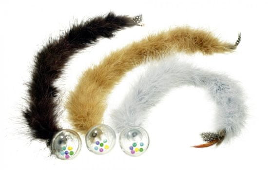 Flamingo Igrača za mačke Žogica s perjem in repom 45cm KAR