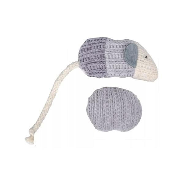 Dve igrači – miška in žogica – sta izdelani iz mehkega pletenega materiala. Uporabljeni materiali spodbujajo mačje lovske instinkte. Miška z dolgim repom iz vrvice je primerna tudi za skupno, interaktivno igro. Dimenzije (približno): (cm): 4,5 × 8 cm Material: Močvirje: mehka pletenina Barva: Barva: siva, bela Obvestilo: Siva barva: Nevarna igrača ni namenjena otrokom. Samo za uporabo pod nadzorom. Igračo redno preverjajte in jo v primeru poškodb prenehajte uporabljati.