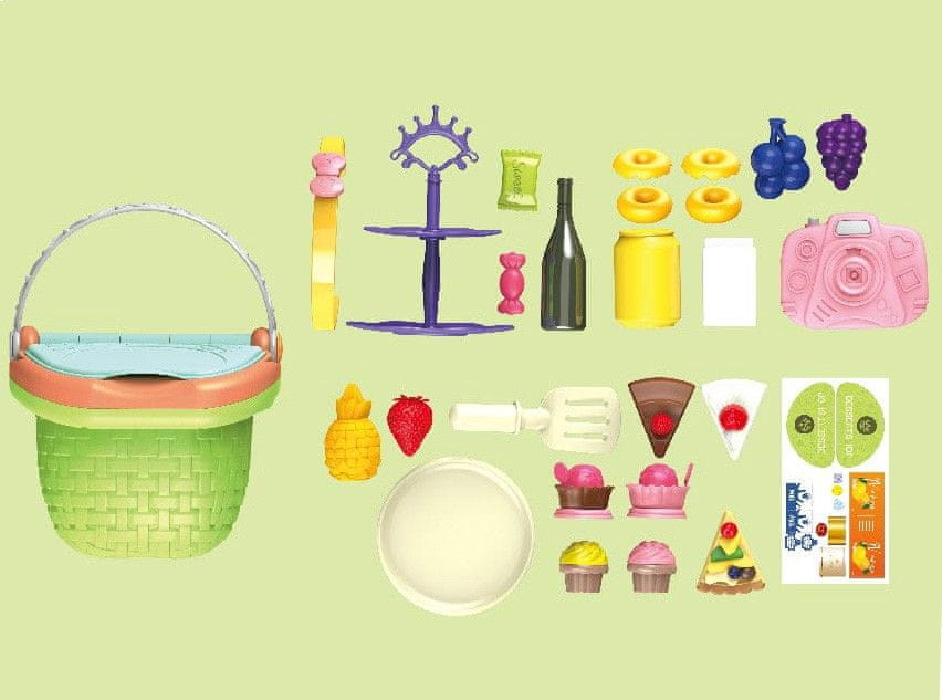 Ta simpatična košara za piknik je kot nalašč za vse male gurmane! Košara vsebuje 27 različnih dodatkov, kot so sadje, sladice, steklenica in krožnik, da lahko otroci sami pripravijo svoj piknik. Odlična je za razvijanje ustvarjalne igre, pri kateri si lahko otroci predstavljajo, da imajo piknik z družino ali prijatelji. Ta komplet je odličen za zabavo doma ali na prostem ter otrokom pomaga razvijati socialne veščine in domišljijo.