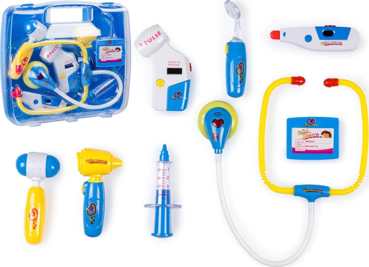 Igra zdravnika spodbuja ustvarjalnost in otrokom daje pogum. Je odlična oblika zabave tudi v otroških skupinah – razvija otrokove socialne veščine in ustvarjalnost. Zvok stetoskopa in svetlobni učinki termometra, merilnika tlaka in drugih instrumentov naredijo zabavo še bolj zanimivo. Celoten komplet je zapakiran v praktičnem kovčku.