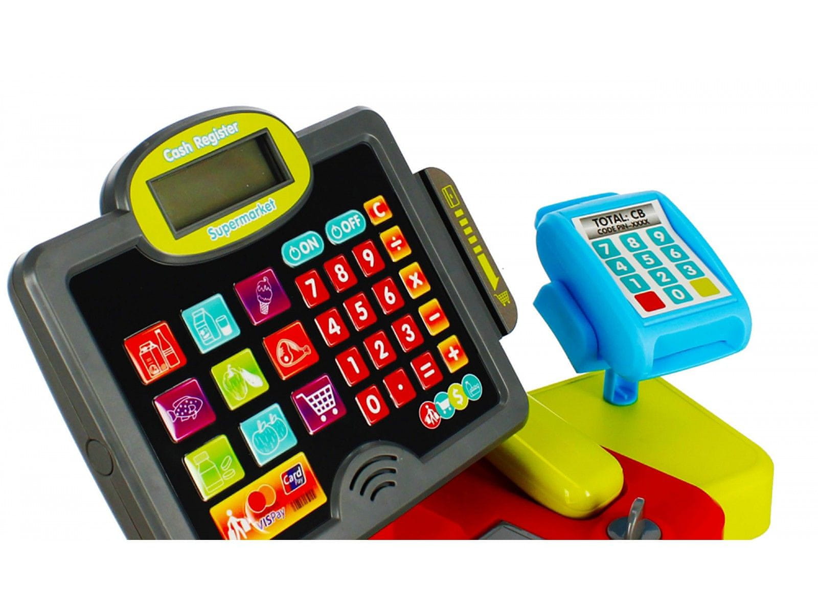 Trgovska blagajna z dodatki je odlična ideja za darilo za otroke. Igra trgovine pomaga pri učenju štetja, spoznavanju vrednosti denarja in utrjevanju imen predmetov, ki jih lahko najdete v trgovini.Blagajna ima ploščo na dotik, elektronski zaslon ter zvočne in svetlobne učinke.Igrača združuje odličn Celoten opis