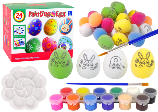 Barvanje velikonočnih jajc Barve z bleščicami DIY Komplet za barvanje jajc bo zabaven za male ljubitelje velike noči. Lepo okrašena velikonočna jajčka bodo odlična dekoracija za veliko noč, ob ustvarjanju čudovitih vzorcev pa bo vaš otrok razvijal ustvarjalnost in umetniški čut. V kompletu je 24 jajčk v 6 barvah ter komplet barv in bleščic, ki čakajo, da ustvarite čudovita jajčka. Paleta barv vam bo omogočila mešanje barv in po končanem delu, takoj ko se dela posušijo, jih lahko obesite s posebnimi obeski, kot so dekoracije za pohištvo ali zavese. Za lažjo predstavo so na jajčka narisani velikonočni vzorci, le pobarvati jih morate. Ustvarili boste čudovito sobno dekoracijo, ki bo vašemu domu dodala božični poudarek. Jajčka so izdelana iz plastike, varna in nestrupena, lahka in uporabna dolgo časa. Elementi seta: – 24 jajčk – paleta barv – obeski – 2 bleščice – čopiči – 12 barv barv Dimenzija jajčka: 6 cm x 5 cm x 5 cm Dimenzije embalaže: 19 cm x 14 cm x 15 cm Igrača primerna za otroke starejše od 3 let. starostno življenje. CE certificiran.