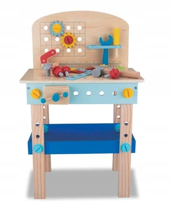 Ta komplet »naredi sam« navdušuje s svojo natančnostjo in funkcionalnostjo že od prvega trenutka Izdelan je iz trpežnega lesa, z zaobljenimi robovi in nestrupeno barvo, kar zagotavlja varno igro Zahvaljujoč realističnim orodjem lahko otroci posnemajo odrasle, hkrati pa razvijajo ročne spretnosti, motorično koordinacijo in logično razmišljanje