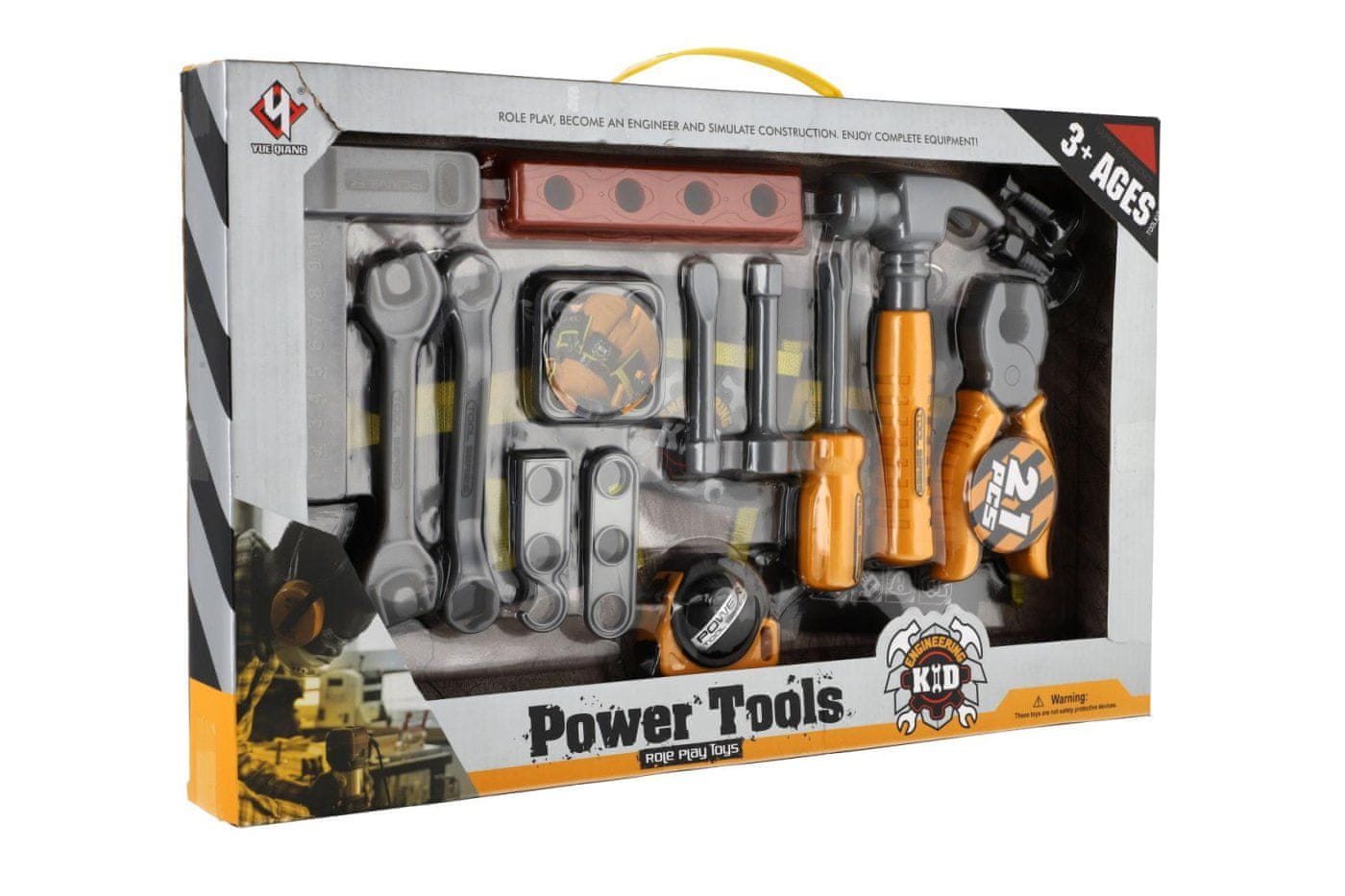 Igrača za male popravljavce, ki radi pomagajo svojim očetom. Veliki komplet za male mojstre vključuje tudi pas. Razvija domišljijo in trenira spretnost. Igrača pomaga razvijati tehnično razumevanje in fino motoriko rok. Dimenzije paketa 46 × 28 × 5 cm. Primerno za otroke od 3. leta starosti dalje.