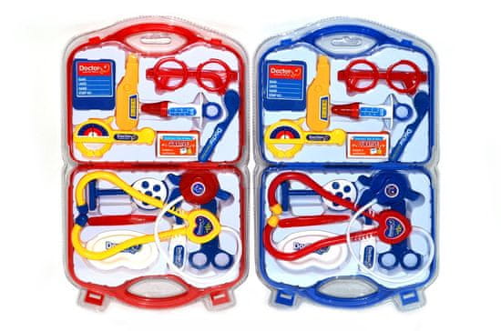 Zdravniški komplet za male zdravnike in zdravnike. Uporabite jih lahko tudi kot dodatek k zdravniškemu kostumu. Poleg kovčka, stetoskopa in termometra je v kompletu še 12 zdravniških pripomočkov.