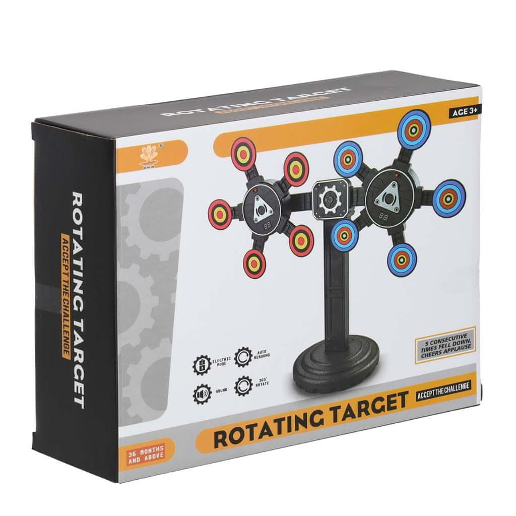 Vrtljiva strelska tarča za trening natančnosti in spretnosti. Premična tarča za pištole z uporabo penastih krogel, žogic in puščic. Interaktivno točkovanje – naprava se odzove na zadetek tarče.Pozor! Komplet vsebuje samo strelsko tarčo, brez igrač.