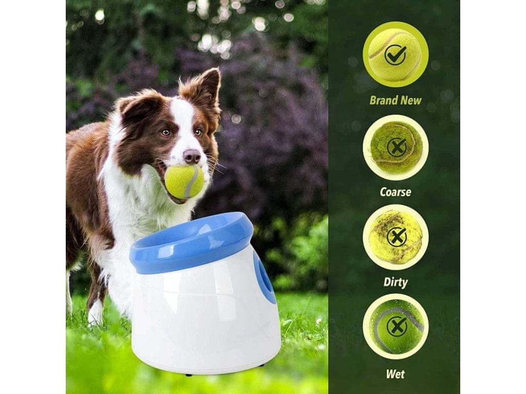 Izberete lahko eno od treh razdalj za udarjanje žoge med približno 3 in 9 metrov, odvisno od trenutnih možnosti prostora in naj se zabava začne! Samo vstavite žogo v metalec, ki jo bo samodejno zadel. Velika novica je, da žoge ni treba dati v repeler samo vi, ampak vaš pes lahko to stori tudi sam brez vaše pomoči, medtem ko si lahko na kavi v miru.