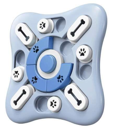Veliko predelkov – zasnovana posebej tako, da ima pes čas za igro, veliko število predelkov bo poskrbelo, da bo pes odkril prigrizke v vsakem predelku. Sredinska sestavljanka se vrti za 360 stopinj, gumb pa povzroča prijeten zvok.