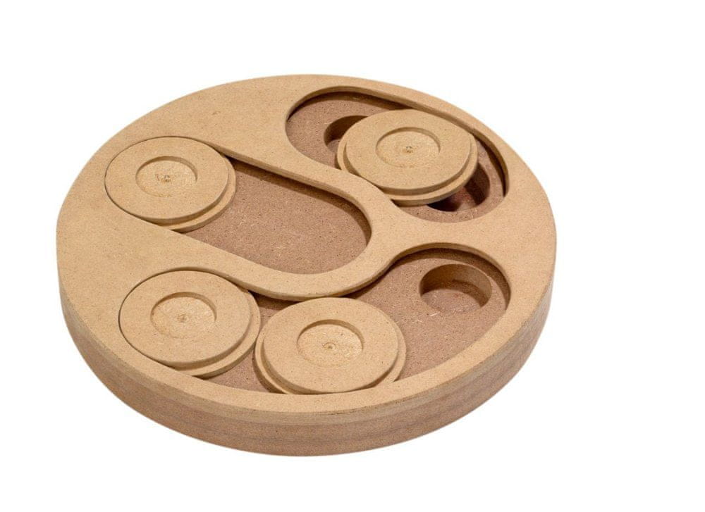 Ta interaktivna igrača bo pritegnila pozornost, čute, zaznavanje in vzdržljivost vašega štirinožnega prijatelja. V sestavljanko vstavite njegove najljubše priboljške in razburljiva igra se lahko začne! Igrača je izdelana iz lesa in je odlična zabava za vsak letni čas. Motivacija s priboljški in neposrednimi nagradami pri reševanju izzivov.