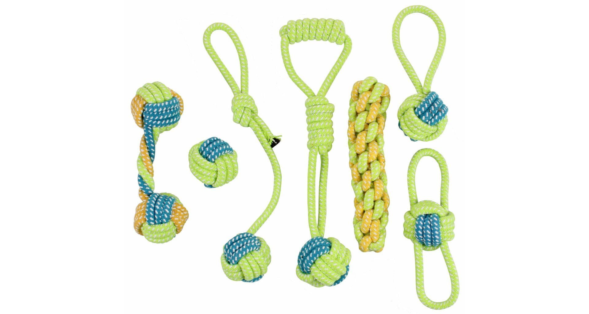 Komplet sedmih vrvnih igrač za pse vseh pasem. Material bombažna vrv. Celoten opis