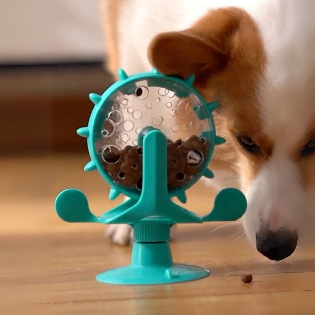 Vrtljiva zasnova omogoča sproščanje hrane ali priboljškov, ko hišni ljubljenček zavrti igračo, kar pomaga vsakodnevno hranjenje spremeniti v bolj spodbudno dejavnost.