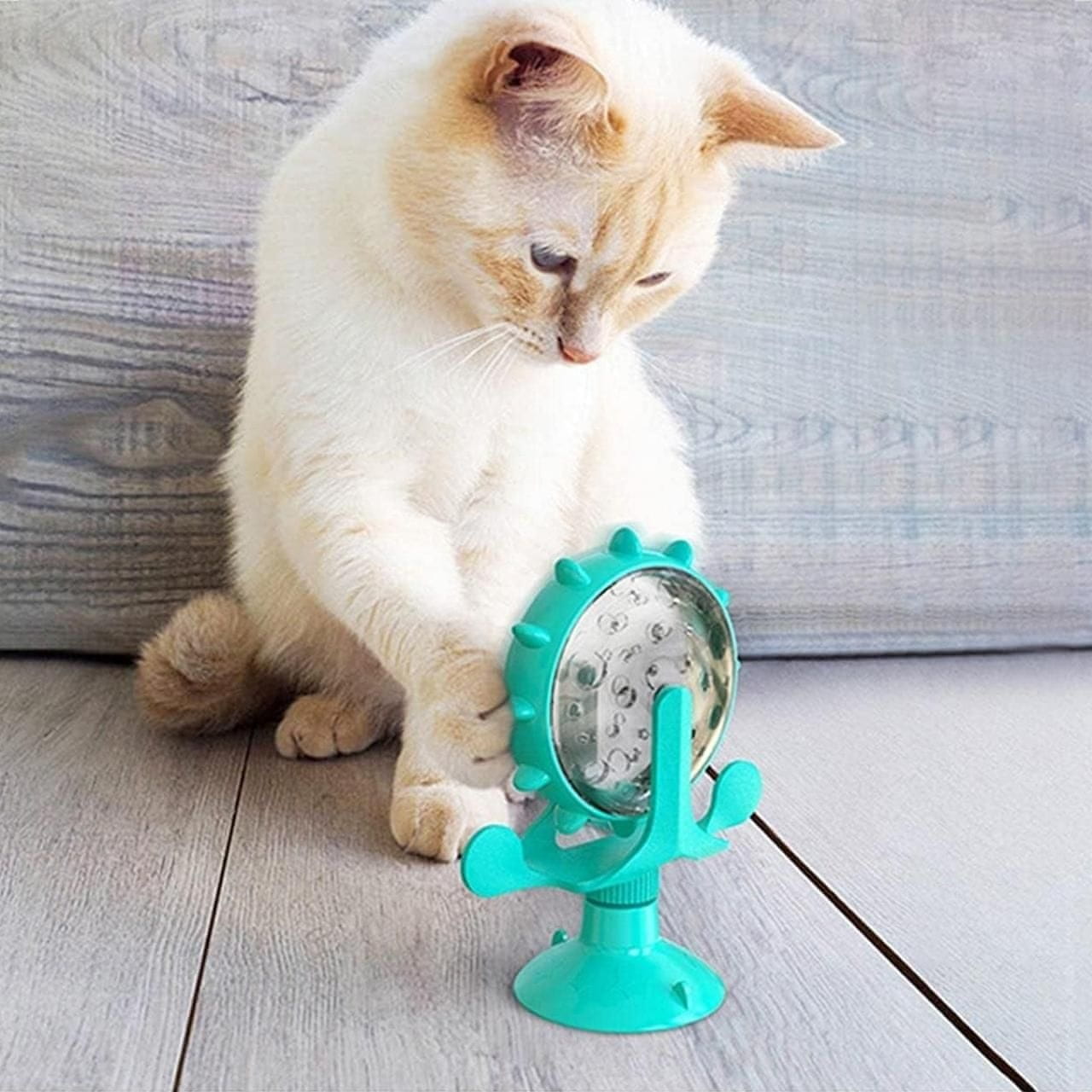 Netscroll Interaktivna vrtljiva igrača za doziranje priboljškov za mačke in pse, 360°, s priseskom, modra, WheelToy