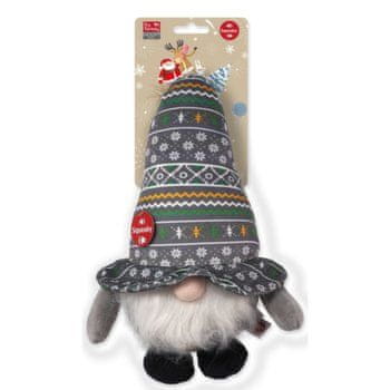 Stilska praznična igrača za pse v obliki piskajočega škrata v prazničnih barvah. Celoten opis