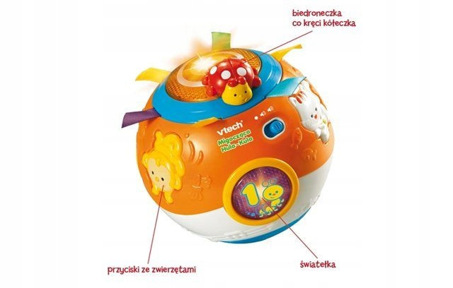 Žoga Hula je na voljo v poljščini, posebna funkcija pa omogoča prilagajanje glasnosti. To izobraževalno igračo lahko preprosto vklopite in izklopite, ne da bi pri tem porabili baterije. Izberite interaktivno darilo za svojega otroka, ki bo spodbudilo njegovo radovednost o svetu. Ta igrača je odlična možnost za dojenčke, stare 6 mesecev in več.