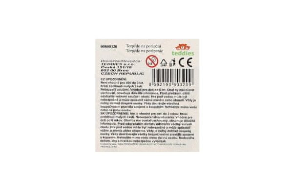 Teddies Torpedo za potapljanje iz plastike 13cm 4 barve na kartici 17x18cm