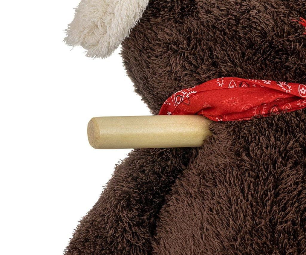 A hinta lábtartókkal és fogantyúkkal ellátott fa hintarudakkal rendelkezik, amelyek segítenek megőrizni az egyensúlyt játék közben, valamint csúszásgátló felületű összecsukható kerekekkel, amelyek másodpercek alatt csodálatos plüssjárgá alakítják.