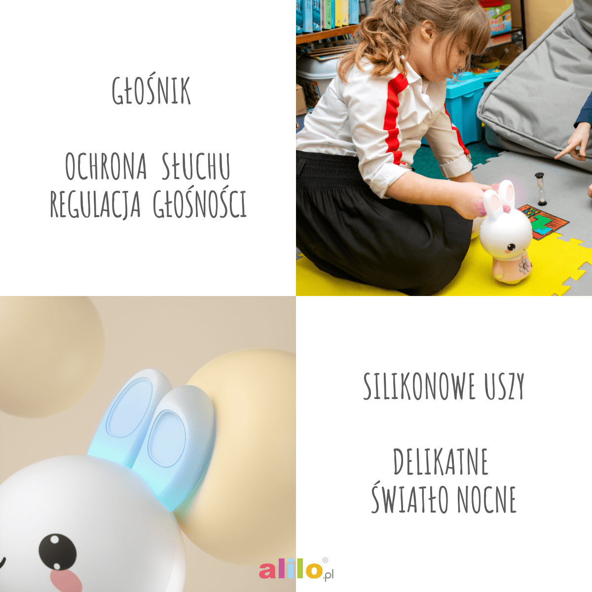 Spoznajte Alilo G6PRO , novo, izboljšano različico ikoničnega Medenega zajčka, ustvarjenega ob praznovanju 10. obletnice blagovne znamke Alilo na Poljskem. To je prijatelj vsakega malčka, ki ima vse , ki združuje predvajalnik MP3, nočno lučko, snemalnik zvoka in funkcijo Bluetooth – vse v elegantnem, modernem dizajnu in privlačnih barvah.