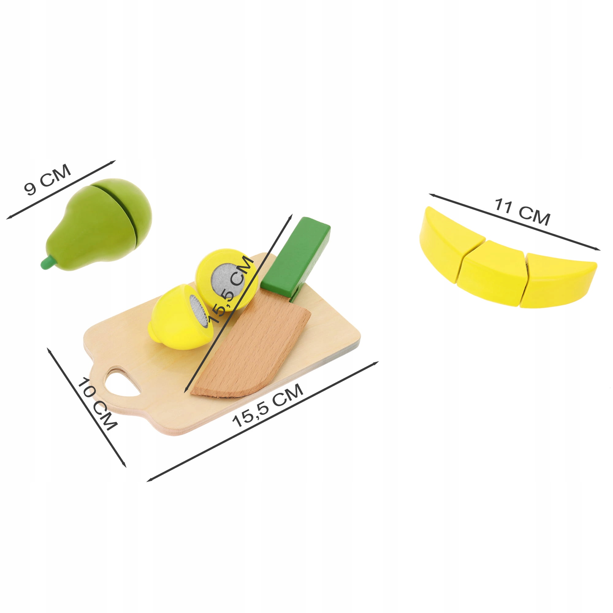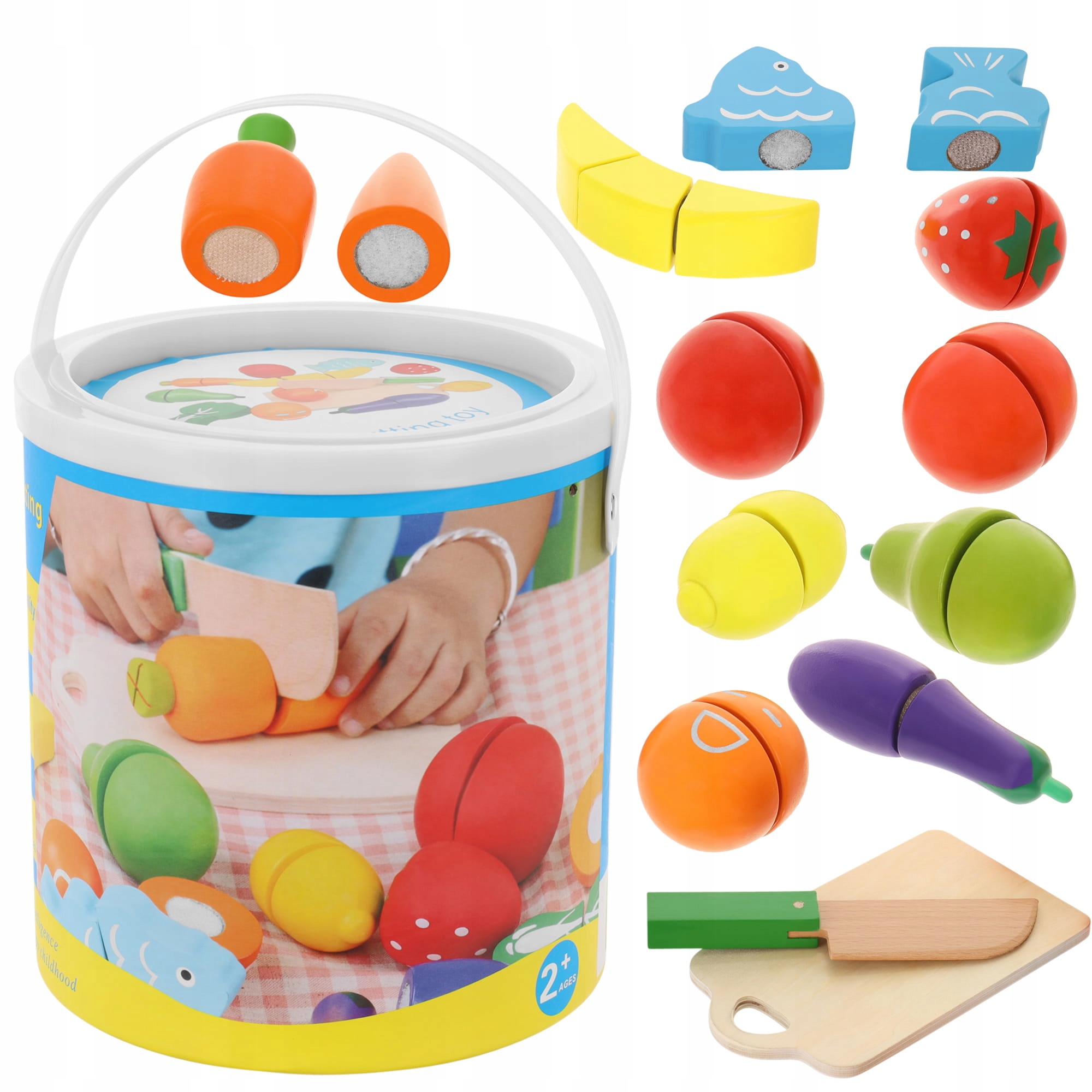 Ta komplet lesenega sadja in zelenjave je popolna igrača, ki vam bo omogočila, da združite koristno z užitkom. Zahvaljujoč njemu se lahko vaš otrok zlahka uči oblik in barv ter postane pravi kuhar.