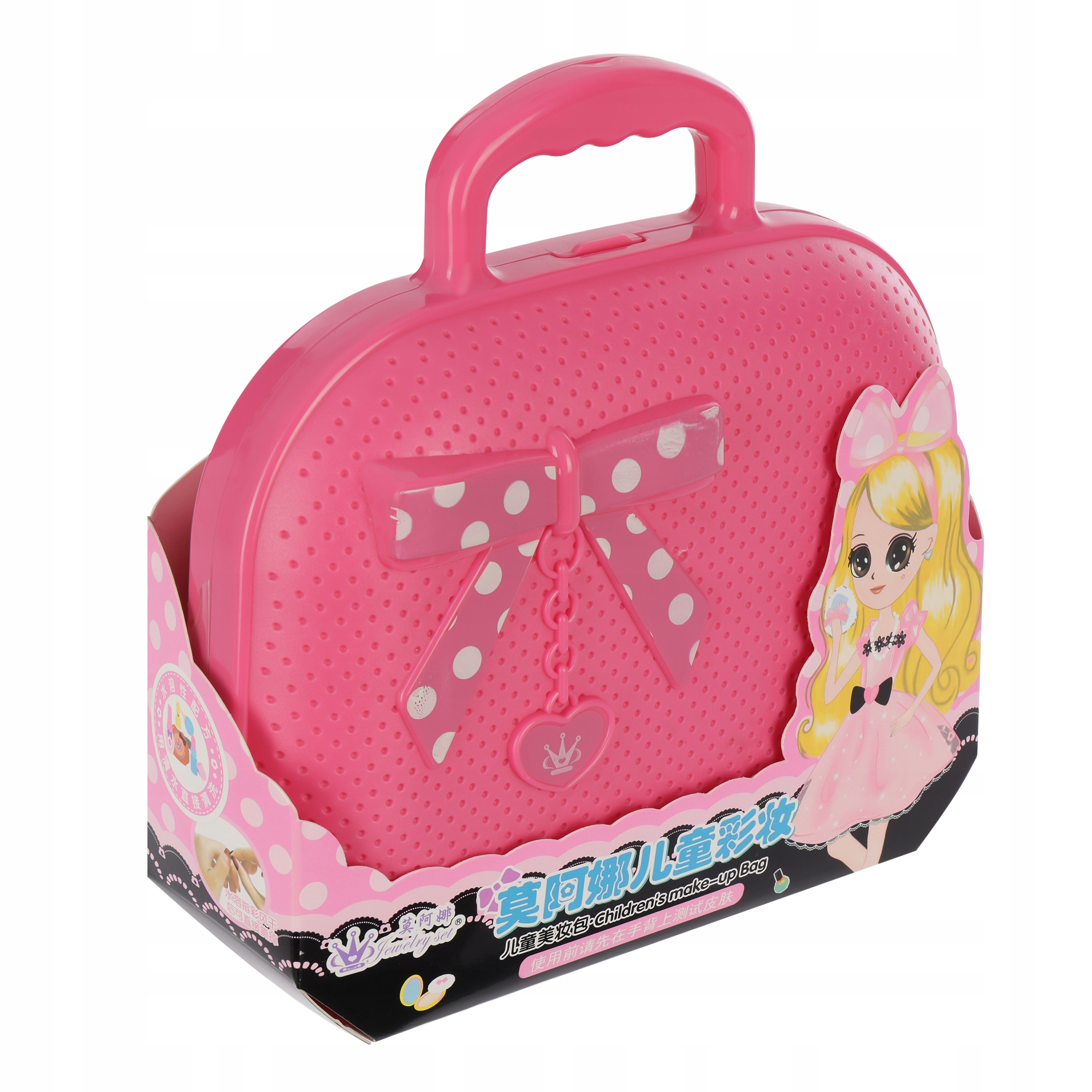 Kljub svoji kompaktni velikosti torbica vsebuje veliko zanimivih predmetov, kot so senčila za veke, laki za nohte, šminka itd. Igrača ima vse, kar potrebuje vsak stilist.