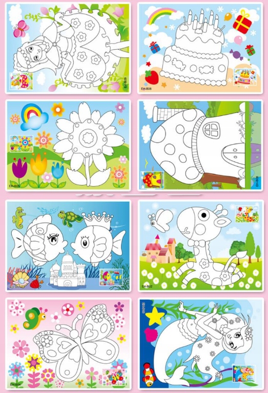 Po igri z pisanimi diamanti lahko otrok obrne sliko . Na hrbtni strani vsakega lista je pobarvanka , , ki otroka dodatno pritegne in mu omogoči še daljšo igro. Specifikacije: