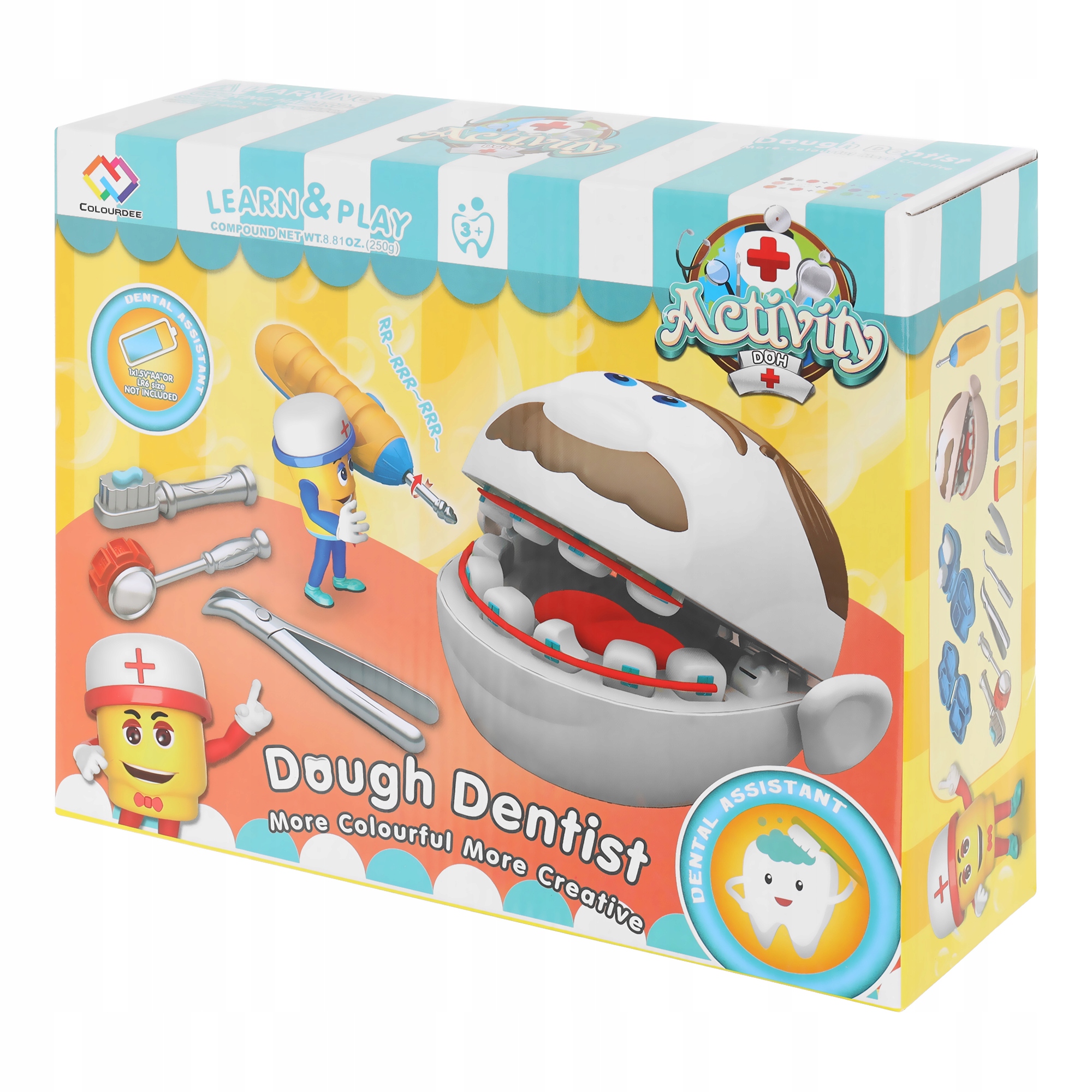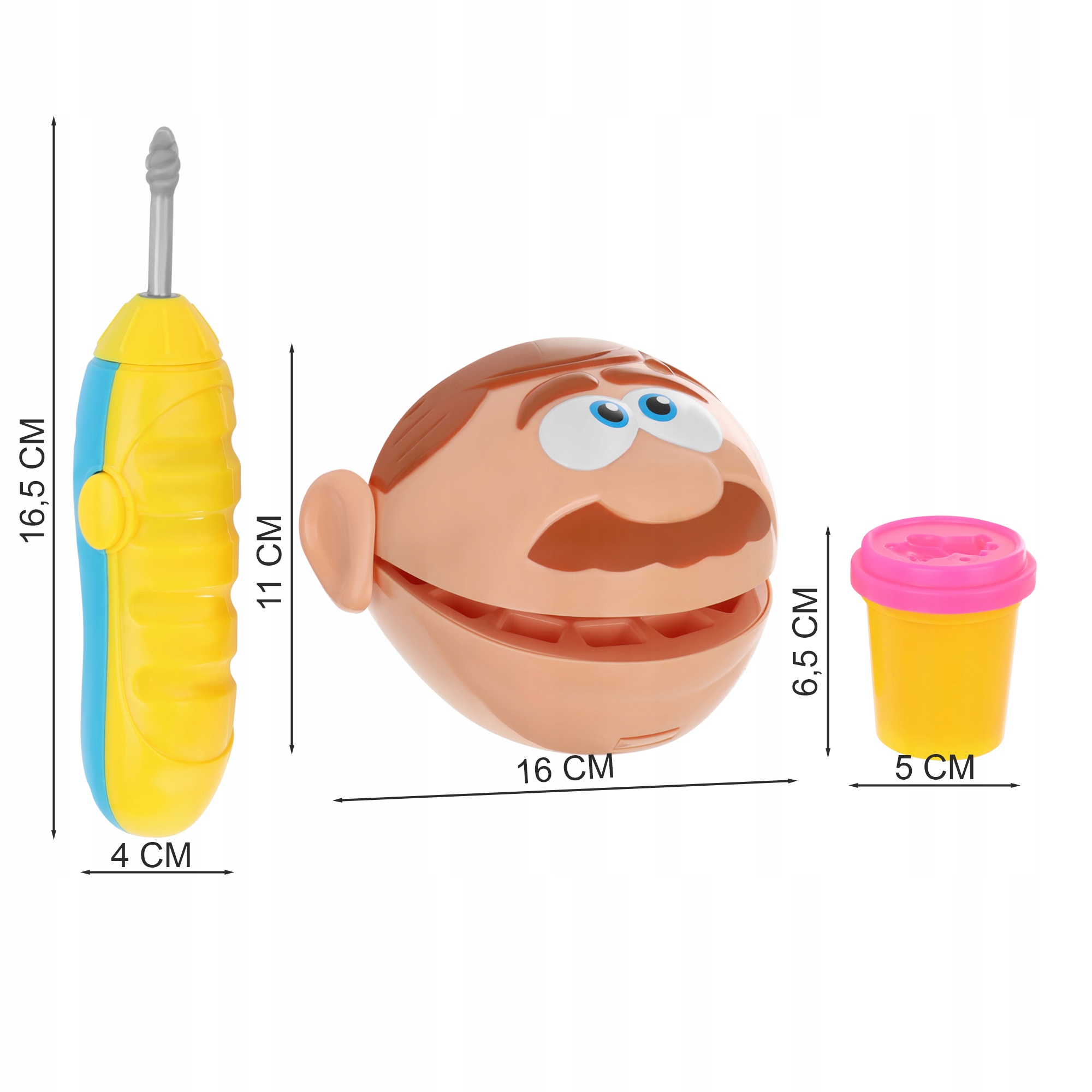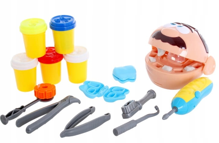 To je fantastična igra, ki bo všeč vsem, ne glede na starost ali spol. Z uporabo plastelina, ki je priložen kompletu , lahko vaš malček pripravi zobe in jih nato vstavi v igračkina usta. Ko je pacient pripravljen, je čas za začetek pregleda! Kot majhen pacient lahko vaš otrok vrta, puli zobe, namešča zalivke in celo namešča zobni aparat – tako kot v pravi ordinaciji.