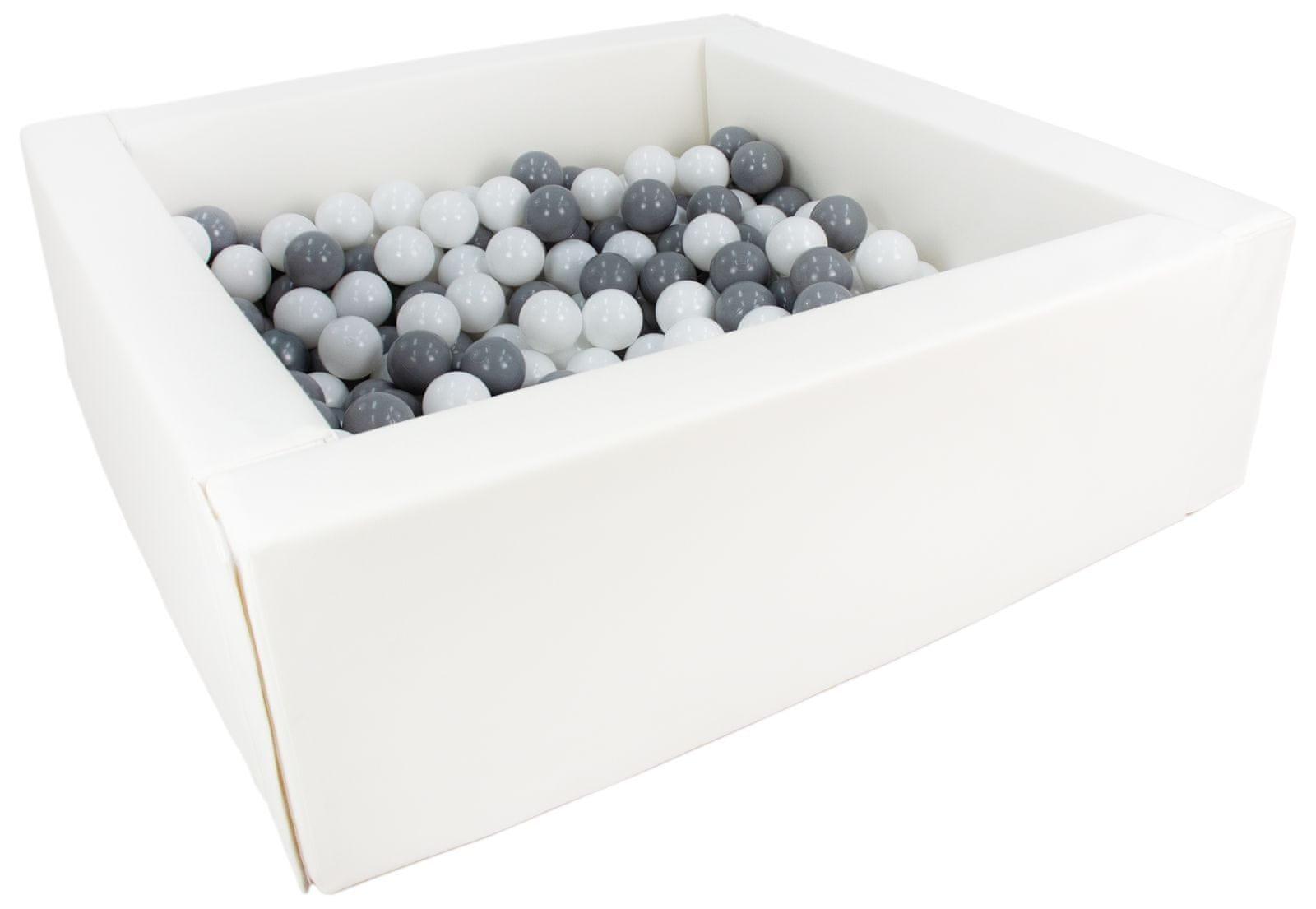 slomart Kvadratni bazen iz ekokože s 200 žogicami, 5 elementov (Barva bazena / žogic: bela/bela, siva)