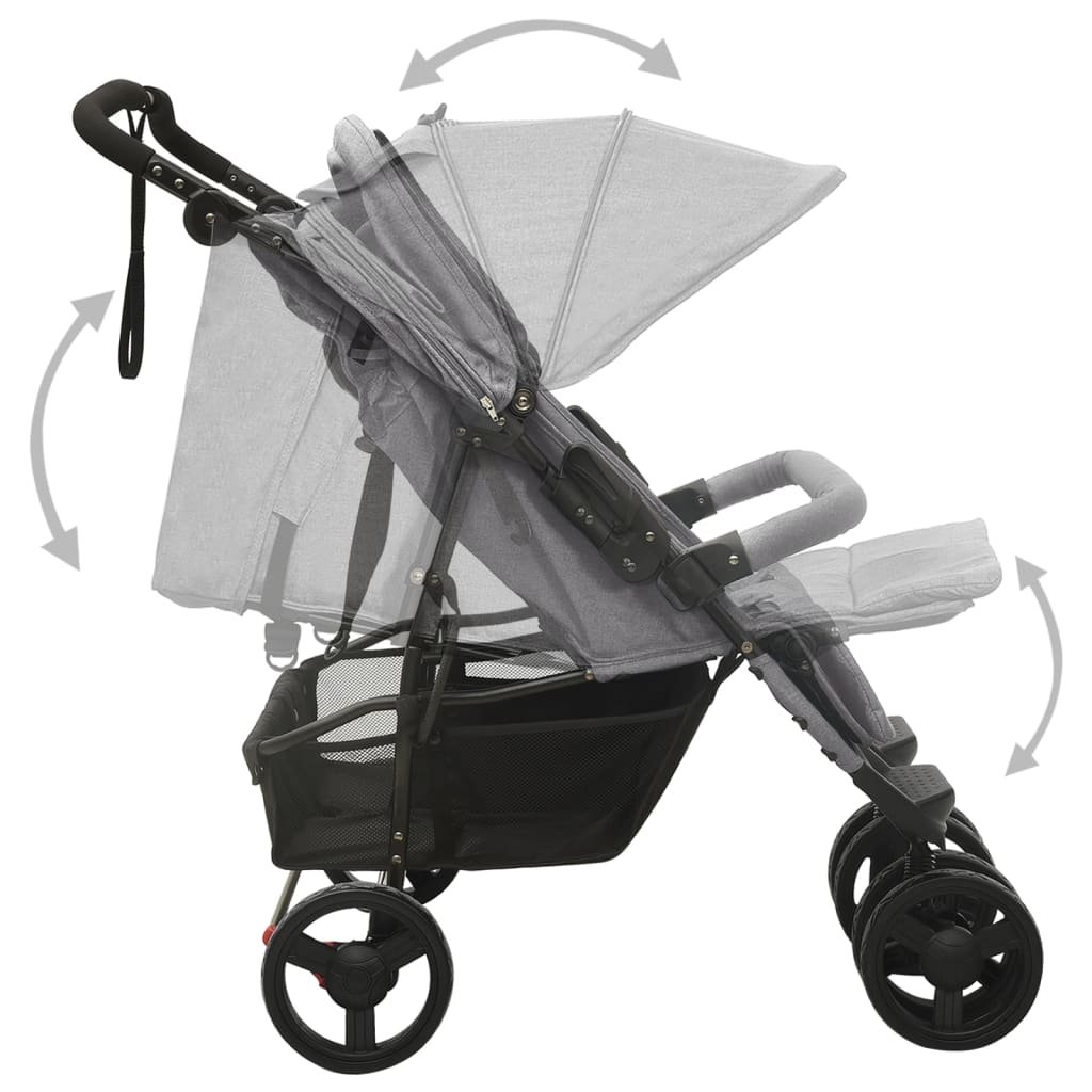 Vidaxl Otroški voziček za dvojčke svetlo siv jeklen