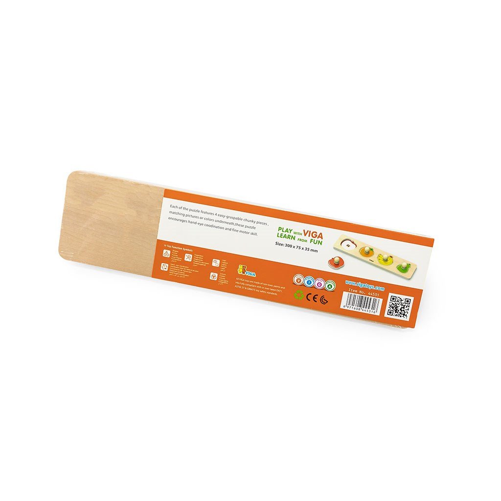 Drevesna sestavljanka za najmlajše z motivom sadja. Dimenzije približno 30×7,5×0,5 cm. Starost 12m+