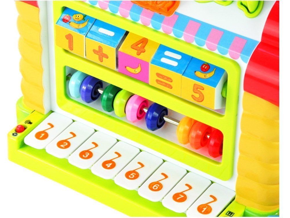 Igrača v obliki hiše ima štiri interaktivne stranske stene in dva aktivna strešna naklona. Vsaka stranska stena je drugačna in vas preseneti z novo igro. Trdna zasnova in živahne barve vsekakor pritegnejo pozornost vsakega malčka. Ta igrača lahko zadovolji potrebo po še tako zahtevnih otrocih.