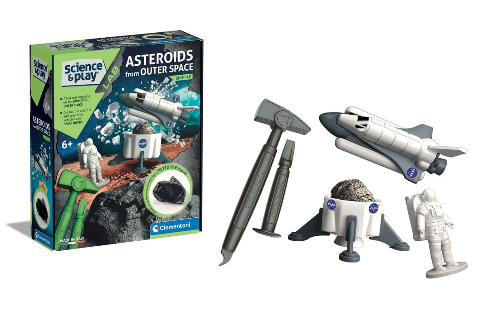 Spodbudite otroke k znanstvenem raziskovanju s super igro Nasa Space Asteroid Shuttle, Clementoni. Neverjeten znanstveni komplet za odkrivanje delcev resničnih vesoljskih kamnin, shuttlea, pristajalnika in astronavta. Igra vsebuje mavčni blok v obliki asteroida, instrumente za izkopavanje in izkopavanje vesoljskega shuttlea, pristajalnika, astronavta in fragmenta meteorita. Zabaven in privlačen komplet za poglobitev v znanstveno vsebino in vesoljske malenkosti. Za ambiciozne kozmonavte in raziskovalce!