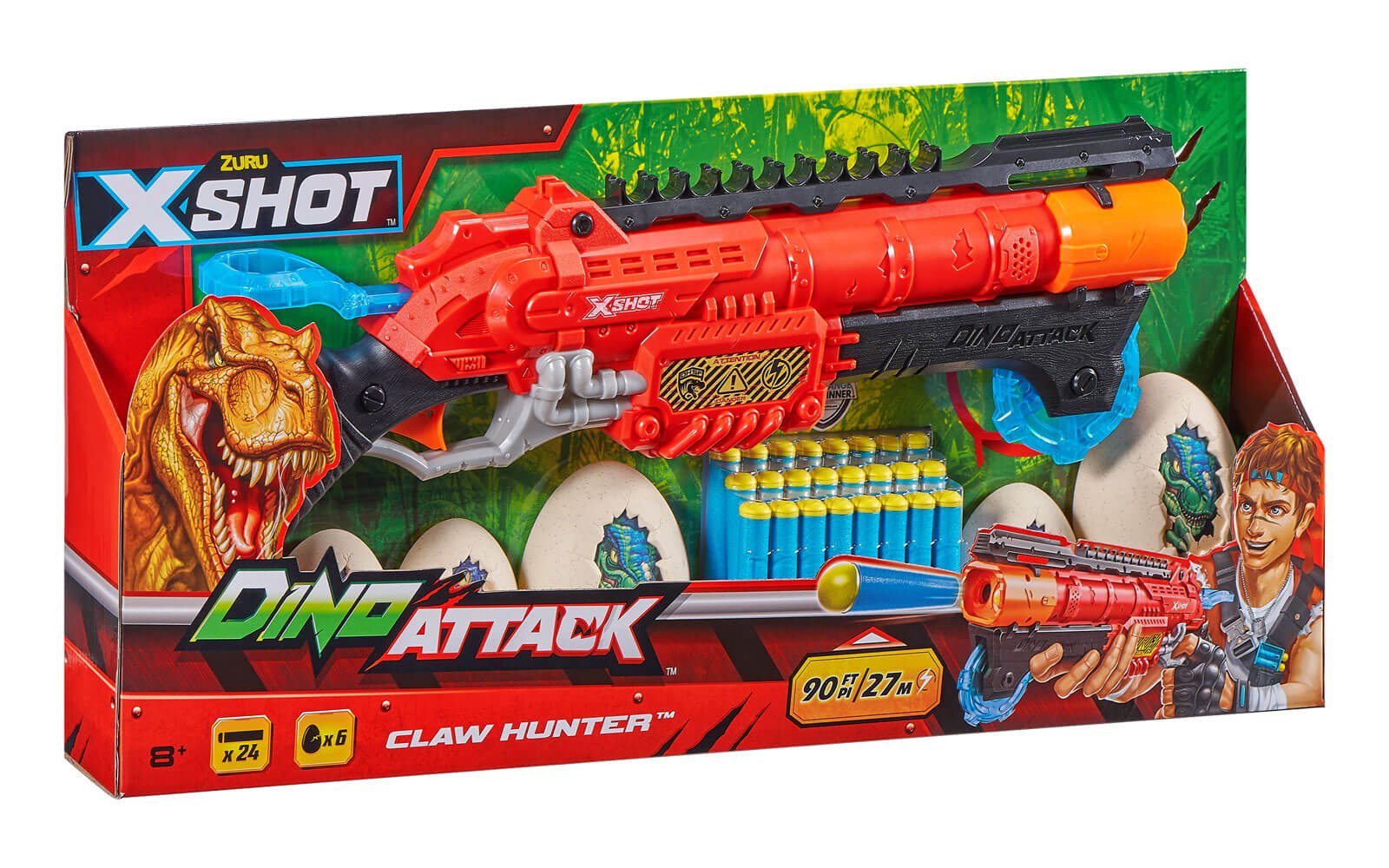 PRIPRAVITE SE NA DINOZAVRSKO AKCIJO! Ste pripravljeni na lov na dinozavrska jajca? S puško X-Shot Dino Claw Hunter se boste podali v pravo pustolovščino in preizkusili svoje strelske spretnosti! Postavite jajca s poslikavami dinozavrov v vrsto in jih poskusite podreti z natančnimi izstrelki. MOČ IN HITROST V ENI PUŠKI! X-Shot Dino Claw Hunter omogoča izstrelitev metkov do neverjetnih 27 metrov! Zahvaljujoč inovativnemu mehanizmu boste lahko hitro polnili puško in izstrelili en izstrelek za drugim. Pripravljeni na dvoboj? Uporabite natančnost, hitrost in strategijo, da premagate vse izzive! ODLIČNA ZABAVA ZA MALE IN VELIKE LOVCE: Ta puška ni samo za zabavo – spodbuja tudi koordinacijo rok in oči ter hitre reflekse. Otroci bodo ob igri razvijali svoje spretnosti in uživali v dinamičnih dvobojih s prijatelji ali družino. Pripravite svojo ekipo in se podajte v pravo dinozavrsko misijo! VSEBINA: X-Shot Dino Claw Hunter puška, 24 mehkih izstrelkov. Puška za delovanje ne potrebuje baterij – le vašo odločnost in željo po zmagi!