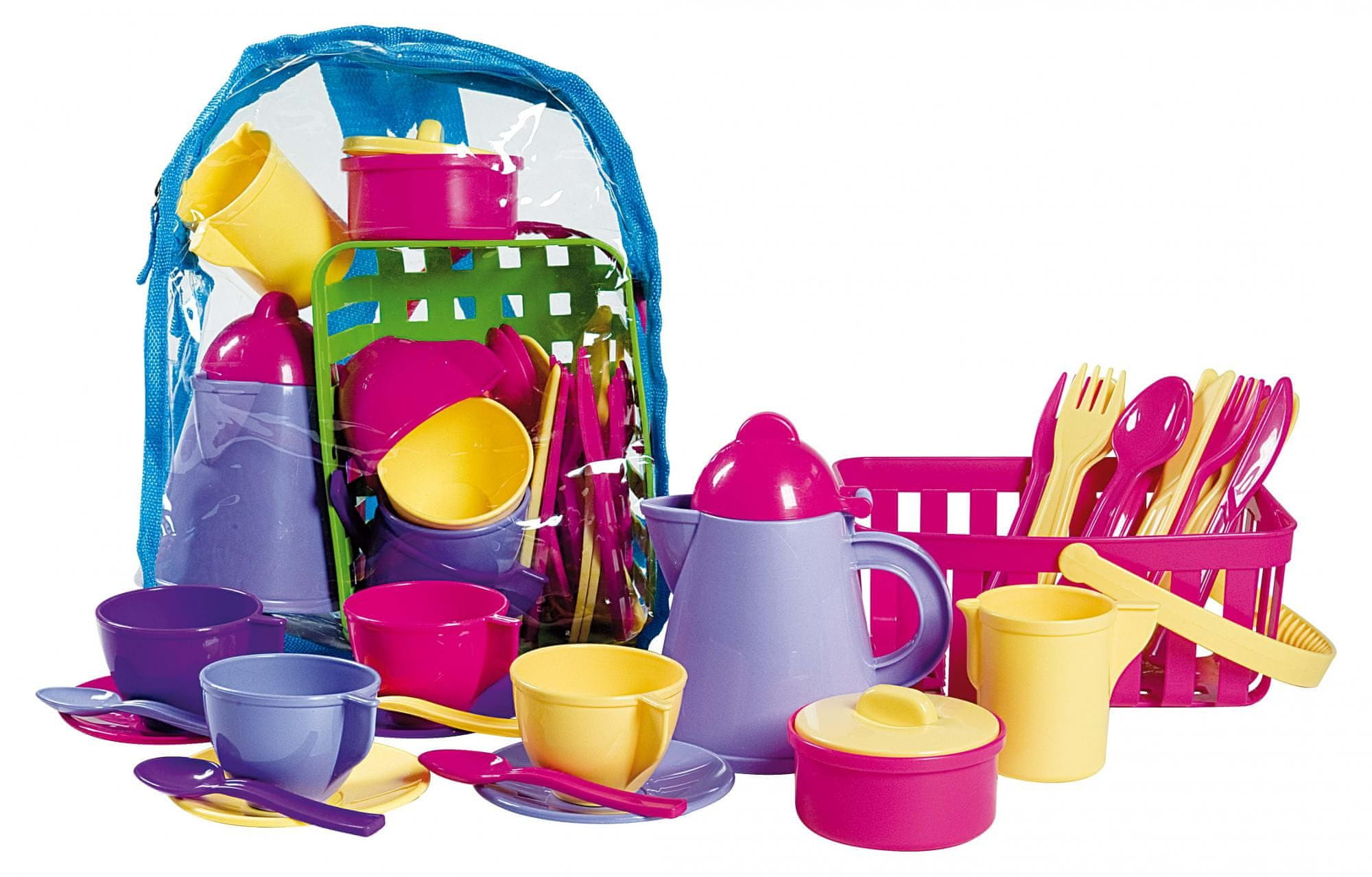 Kantica s pripomočki za igro s peskom. V setu priložen mlinček, grabljice, lopatka in sito. FI 180mm.