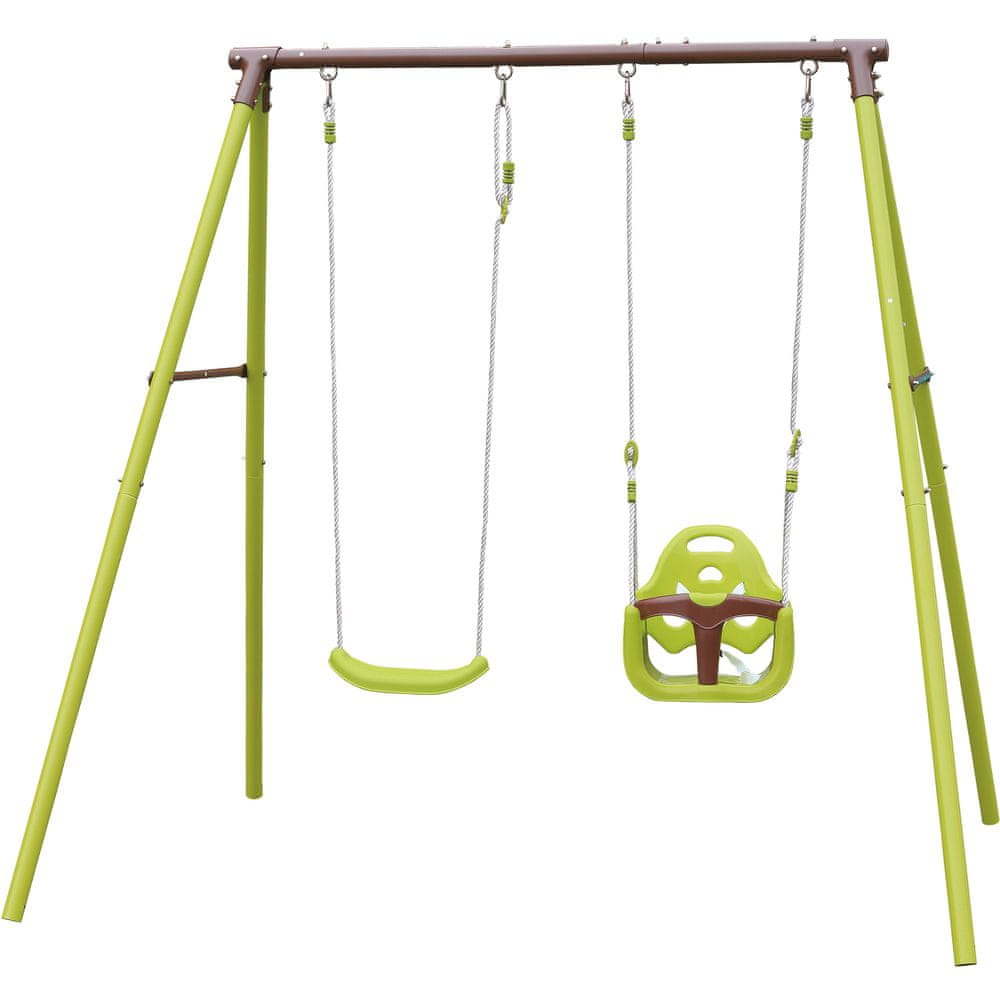 Vsebuje 2 enojni gugalnici in dvojno gugalnico, kar omogoča hkratno igro 4 otrok. Ne skrbite, če otroci prehitro zrastejo, saj lahko viseče vrvi enostavno in v hipu prilagodite na želeno višino. Kovinski okvir v obliki črke A zagotavlja največjo stabilnost in varnost. Prenesite zabavo na svoj vrt!