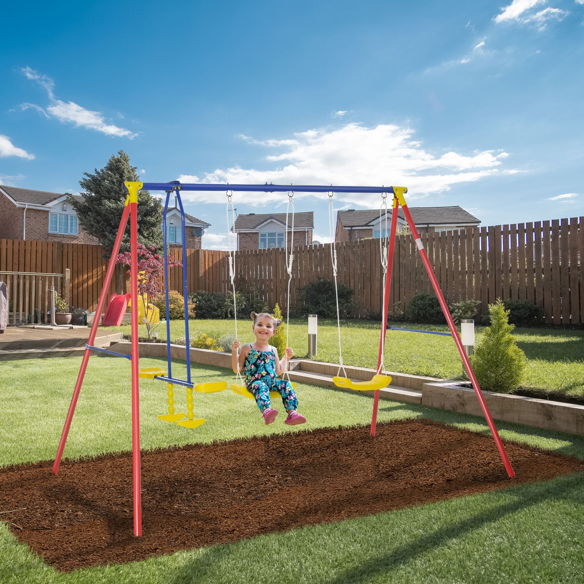 OUTSUNNY Vrtna gugalnica Outsunny za 4 otroke, 2 enojni gugalnici in 1 dvojna gugalnica, kovina in PE, največja obremenitev 160 kg, 290x180x196 cm