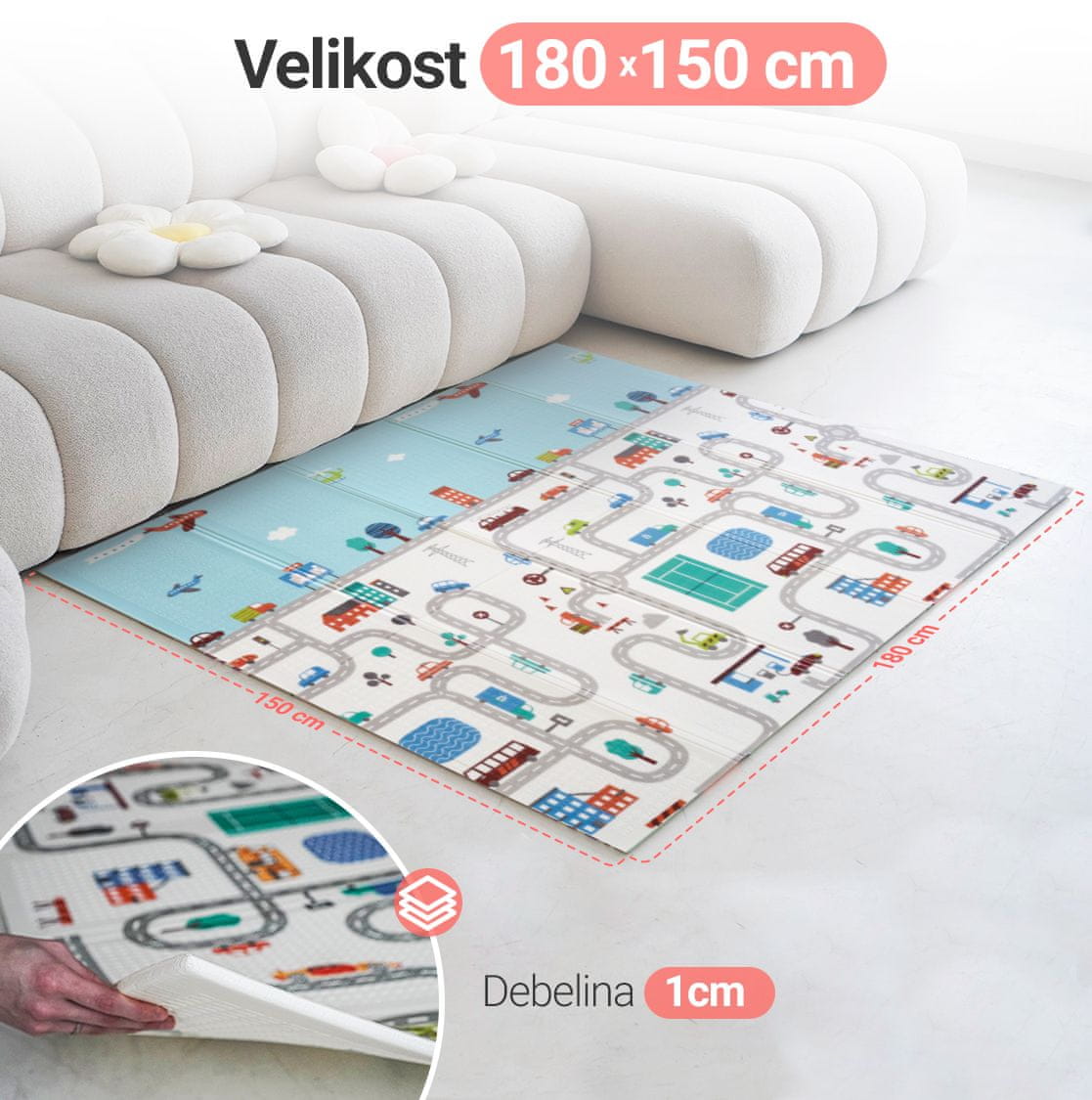 MIKMEL Otroška igralna podloga iz pene zloženka, nepremočljiva, reverzibilna preproga Ceste/Zvezde 180x150 cm