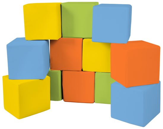 Nabor kubičnih penastih blokov sestavlja 12 različnih barvnih kock.
