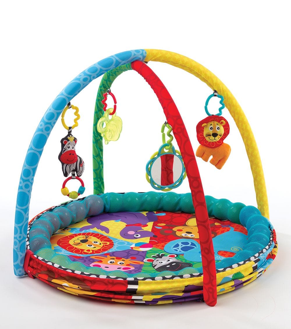 Podloga za izobraževanje je varen prostor za igro. MoMi LAMMIS je privlačno igrišče za vašega malčka. Ima barvito pravljično obliko in 4 različne odstranljive igrače. Podloga je obdana z mrežno pregrado, ki povečuje varnost otroka in vam omogoča, da plezajočega malčka za nekaj časa pustite pri miru in ne skrbite, da se bo sam sprehajal po stanovanju.