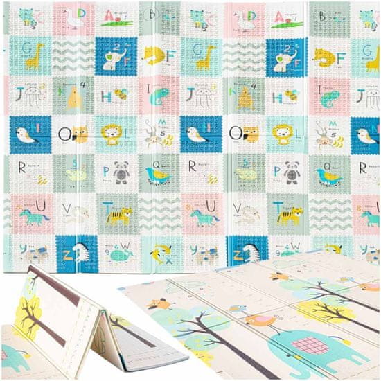 Obojestranska penasta podloga za dojenčka nima samo vizualne, ampak tudi izobraževalno vrednost! Na eni strani je safari panorama, na drugi strani pa očarljive, raznolike slike!