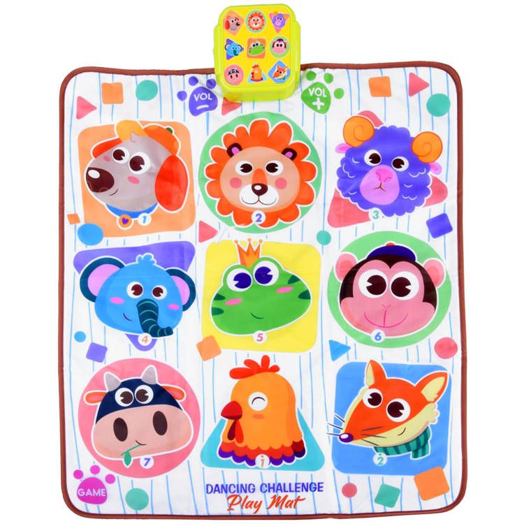 Interaktivna glasbena spominska podloga – arkadna igra za najmlajše. Podloga iz mehkega materiala, v veseli grafiki pisanih živali, bo spodbudila vsakega otroka, da razume izziv pritiskanja osvetljenih elementov na ploščo.